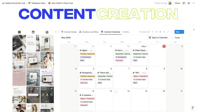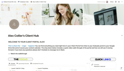Notion portal w/ content calendar